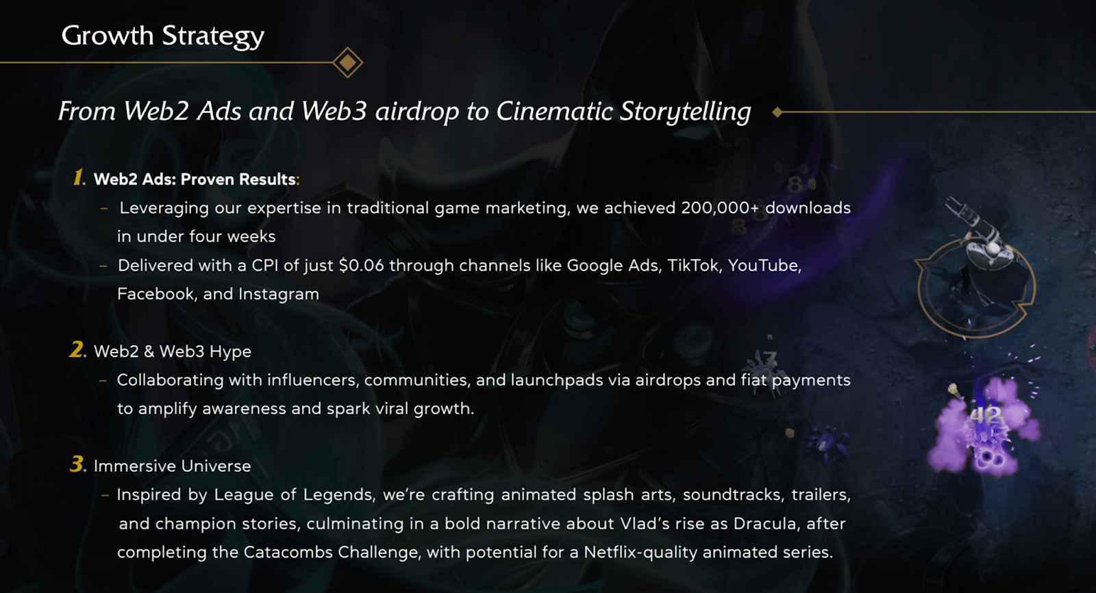 Go-to-market: With a ready-for-release game, start with a big marketing push as a web2 game, earn web2 revenue from lootboxes, and then let users trade in-game assets as NFTs that they cannot buy from the game directly.