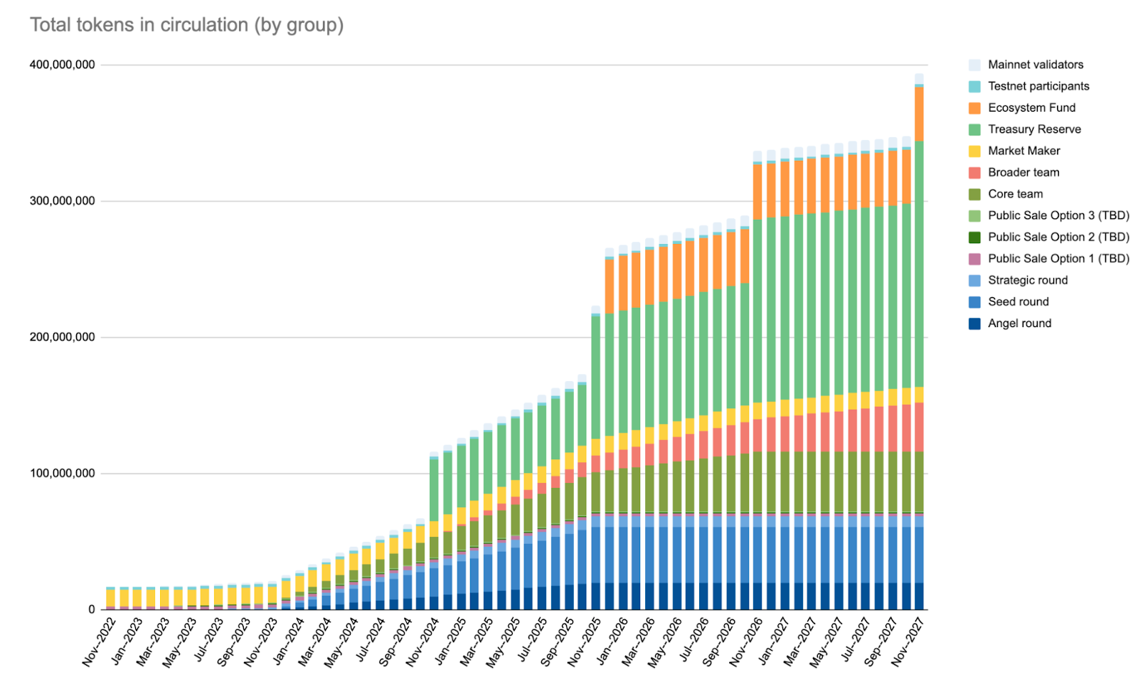 - Mainnet validators – gradual stream from Jan 2023 through Nov 2026