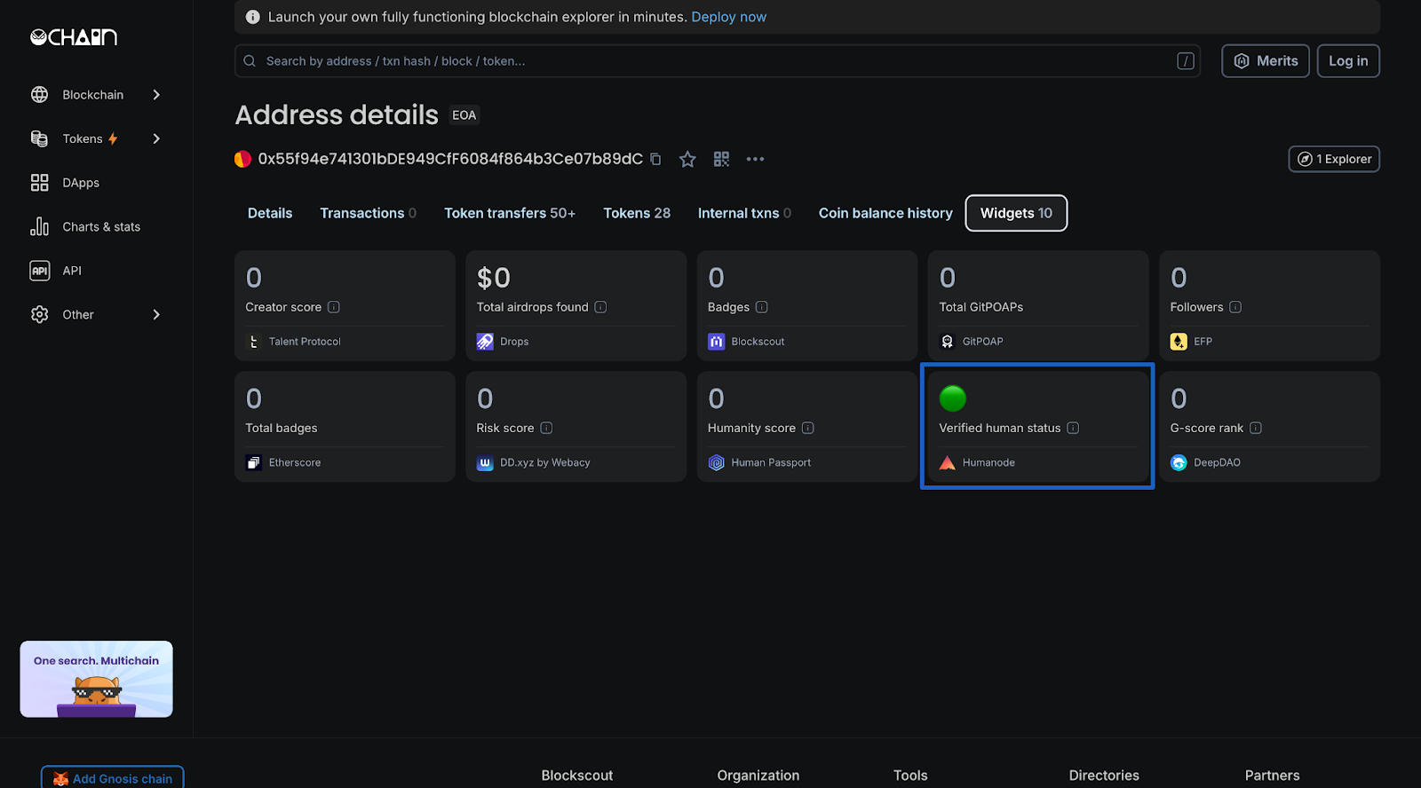 When you search for a wallet on Verax or Blockscout, you’ll now see a visual human checkmark in the widgets.